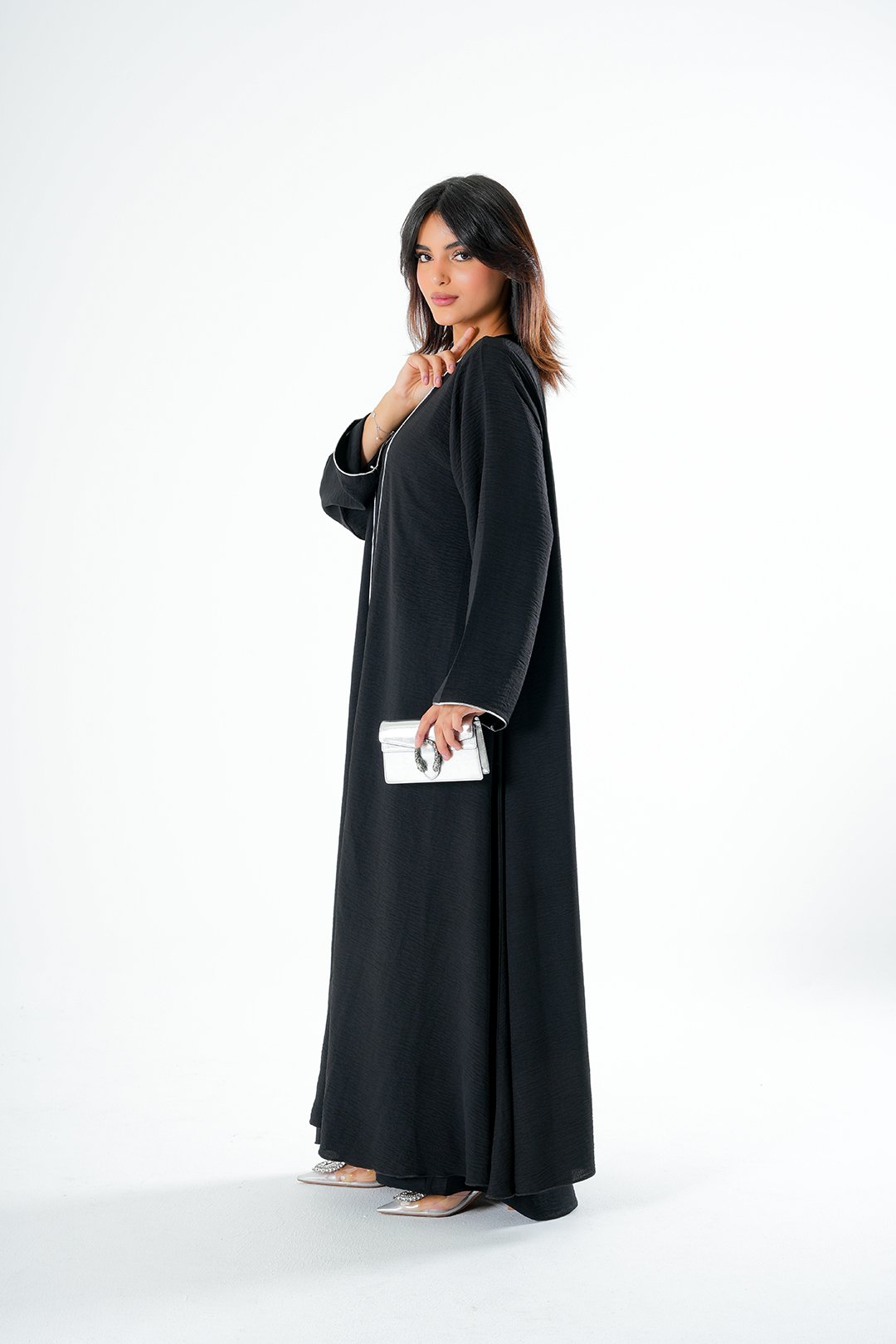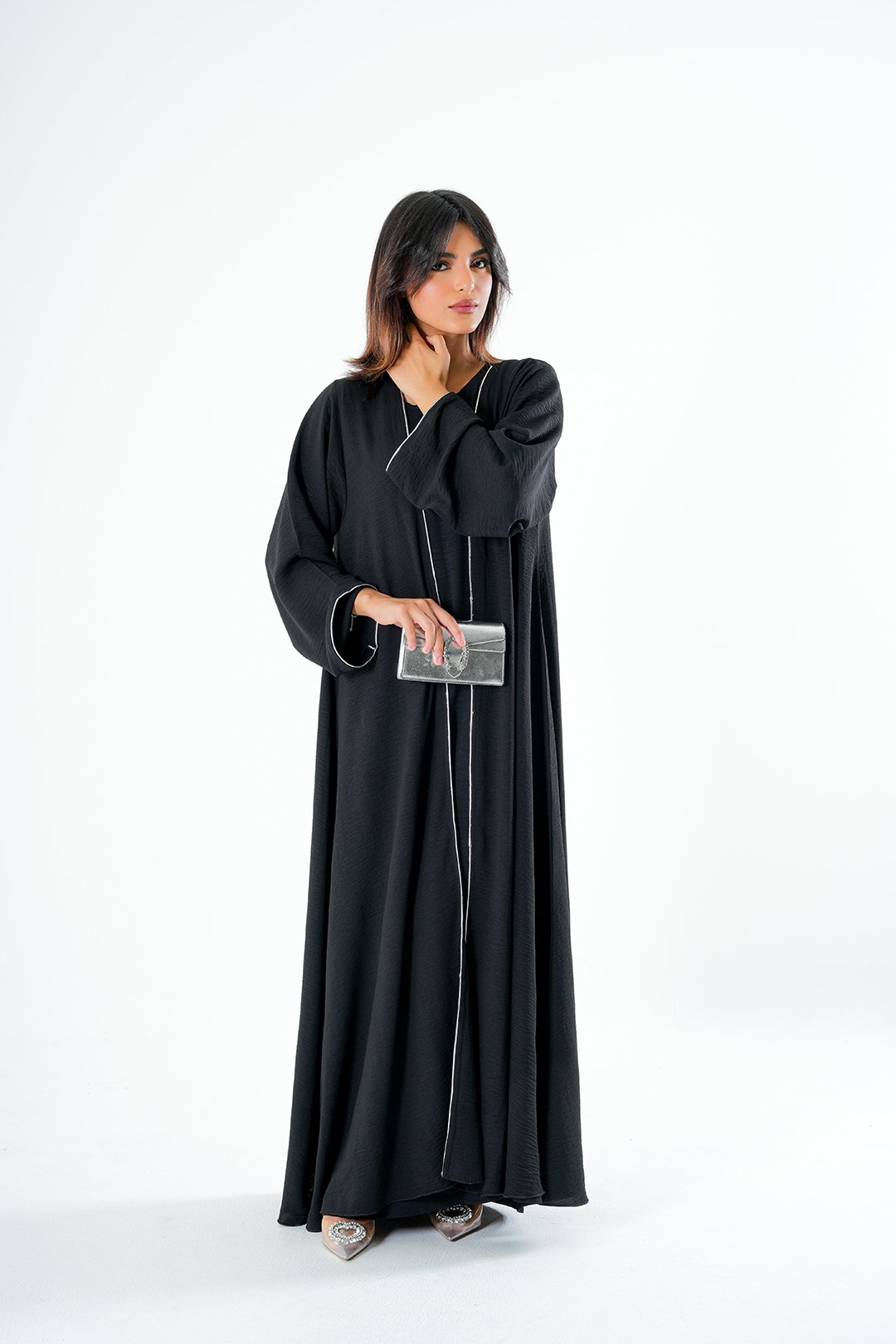Description:A gracious fine escada Linen abaya combines elegance and sophisticated simplicity with its unique style and fabric. This abaya is for your summer days and nights it’s light, breezy, colourful and super trendy. This Mint green abaya is trimmed in silver ribbon.