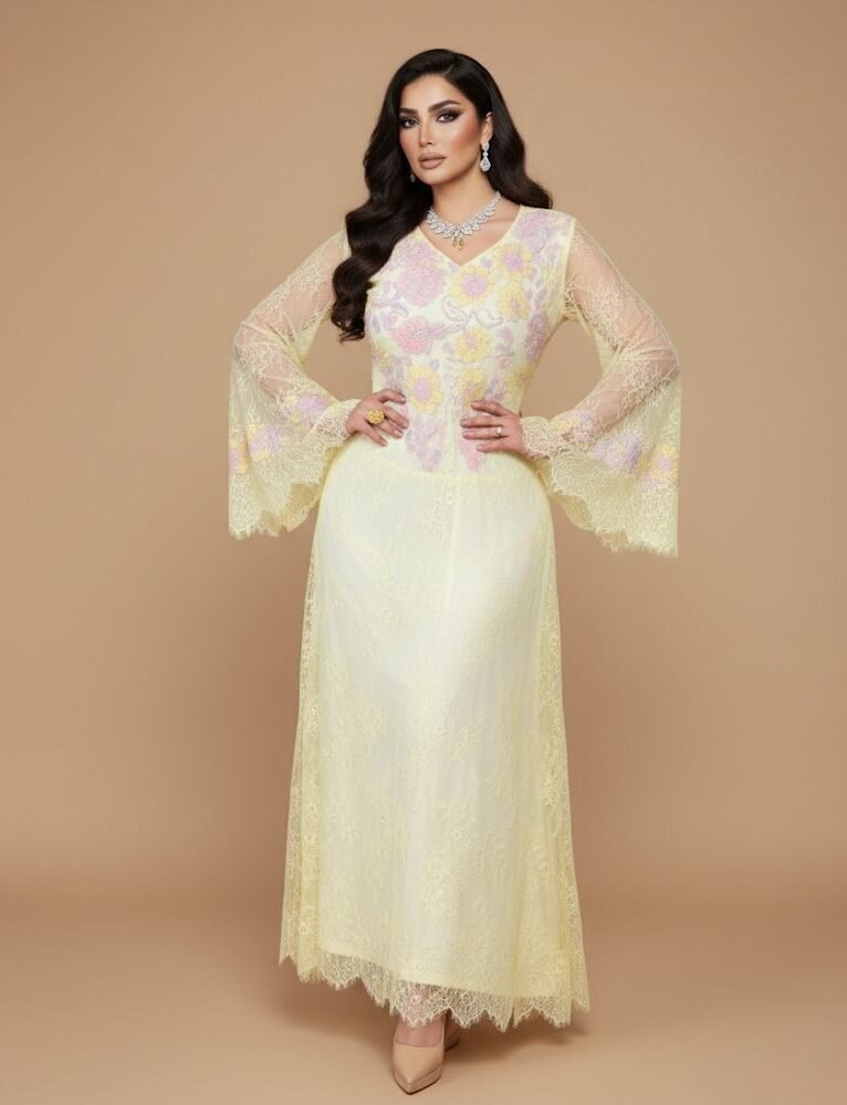 دانتيل فرنسي مبطن بقطعه ناعمة ومطرزة