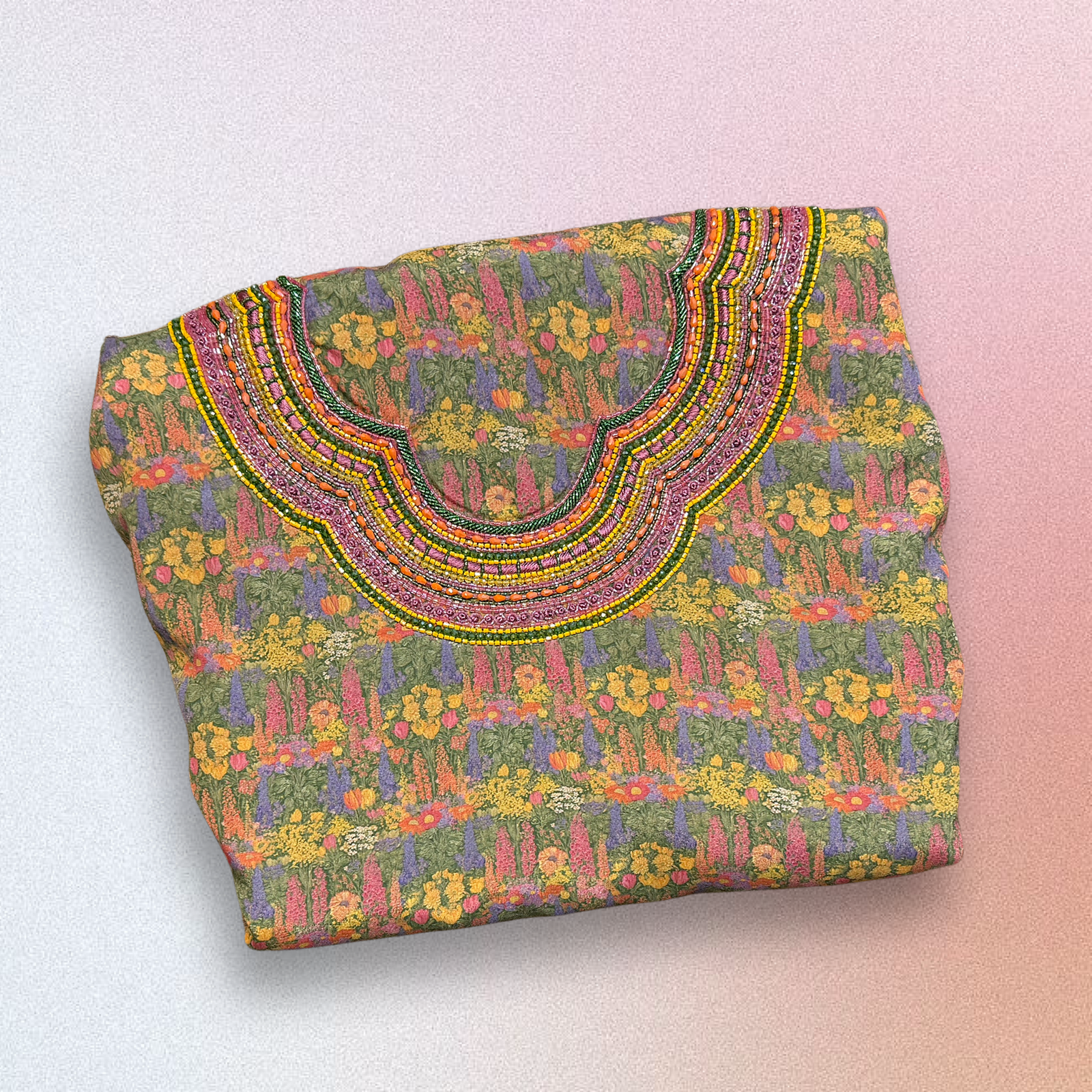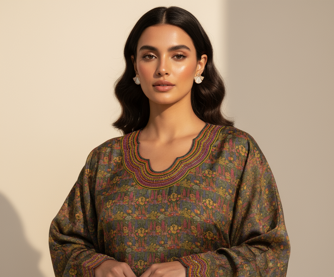 – Fabric: Premium Crepe Satin (matte with a butter feel) – neckline: 6.5 x 7 inch – sleeves: 14 inch (all around)
